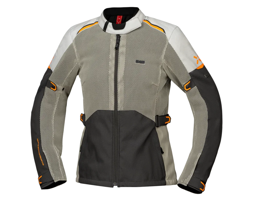 Uzun yaz turlarında serin kalmak isteyen kadın sürücüler için geliştirilen Tourster-BigAir 1.0 Kadın Yazlık Motosiklet Montu; kalıcı geniş havalandırma panelleri, hızlı kuruyan iç file yapısı ve esnek AeroMesh dış kabuğu sayesinde yüksek sıcaklıklarda bile ferah ve konforlu bir sürüş sunar. Modelin yapı taşı olan AeroMesh esnek dış kabuk ve 450D kaplamalı X-Stretch kumaş, rüzgâr geçirmez, su itici ve son derece dayanıklı bir kombinasyon oluşturur. Hem esneme kapasitesi hem de bedene uyumu sayesinde uzun turlarda maksimum hareket özgürlüğü sağlar.