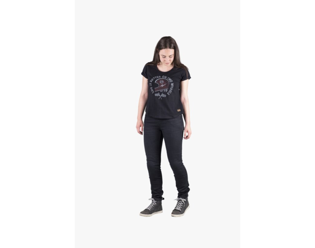 Kadın anatomisine uygun Slim Fit kalıbı ve içeriğindeki elastan sayesinde vücudu mükemmel sarar. Esnek yapısı, sürüş sırasında bacaklarınızı sıkmaz ve hareket özgürlüğü sağlar. Ancak bu konforun altında ciddi bir mühendislik yatar: Kritik bölgeler, sürtünmeye ve ısıya karşı ultra dayanıklı Aramid lifleri ile güçlendirilmiştir.